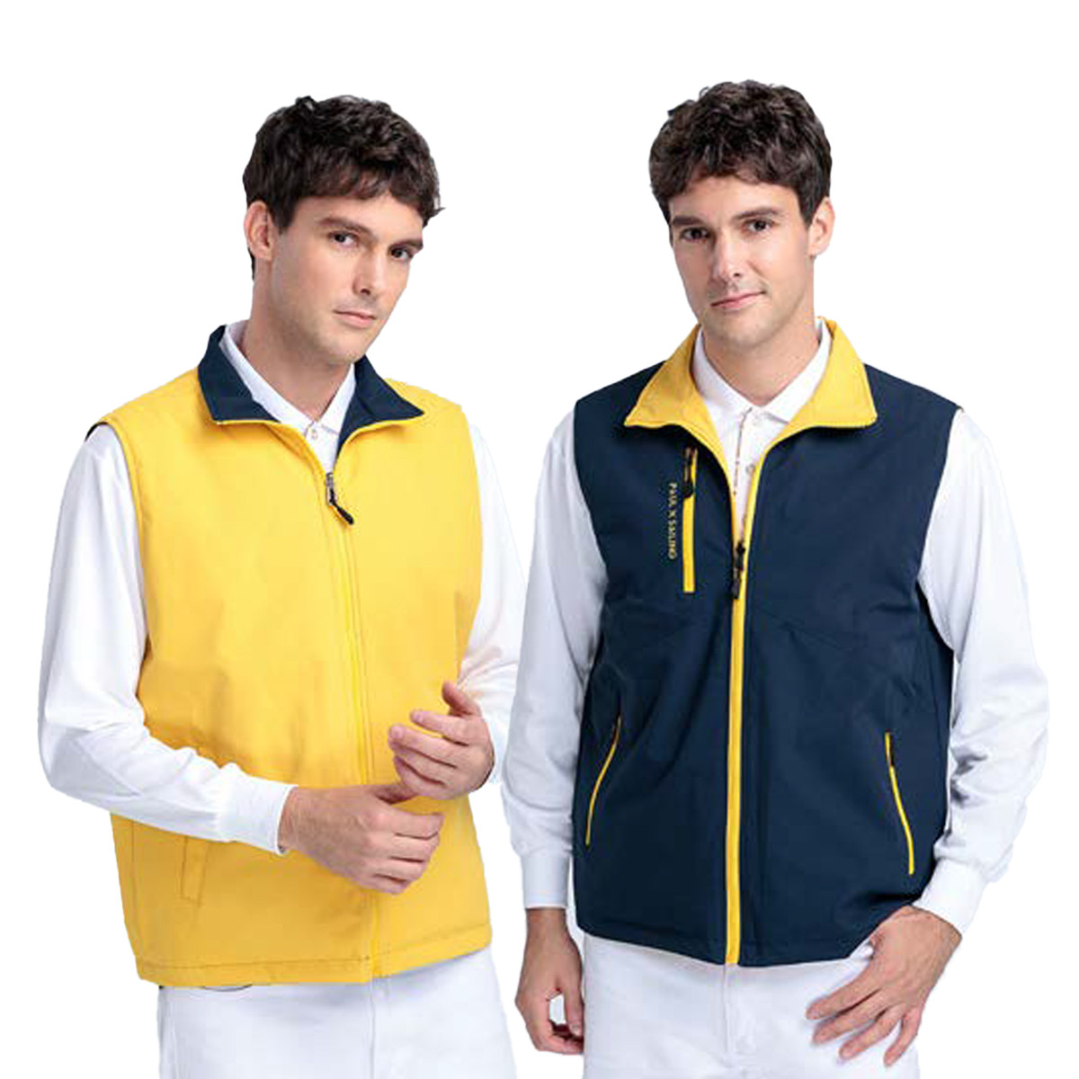 編號:4502-2外套(丈青色-中性版)+5502-2 背心(丈青配黃色-中性版)